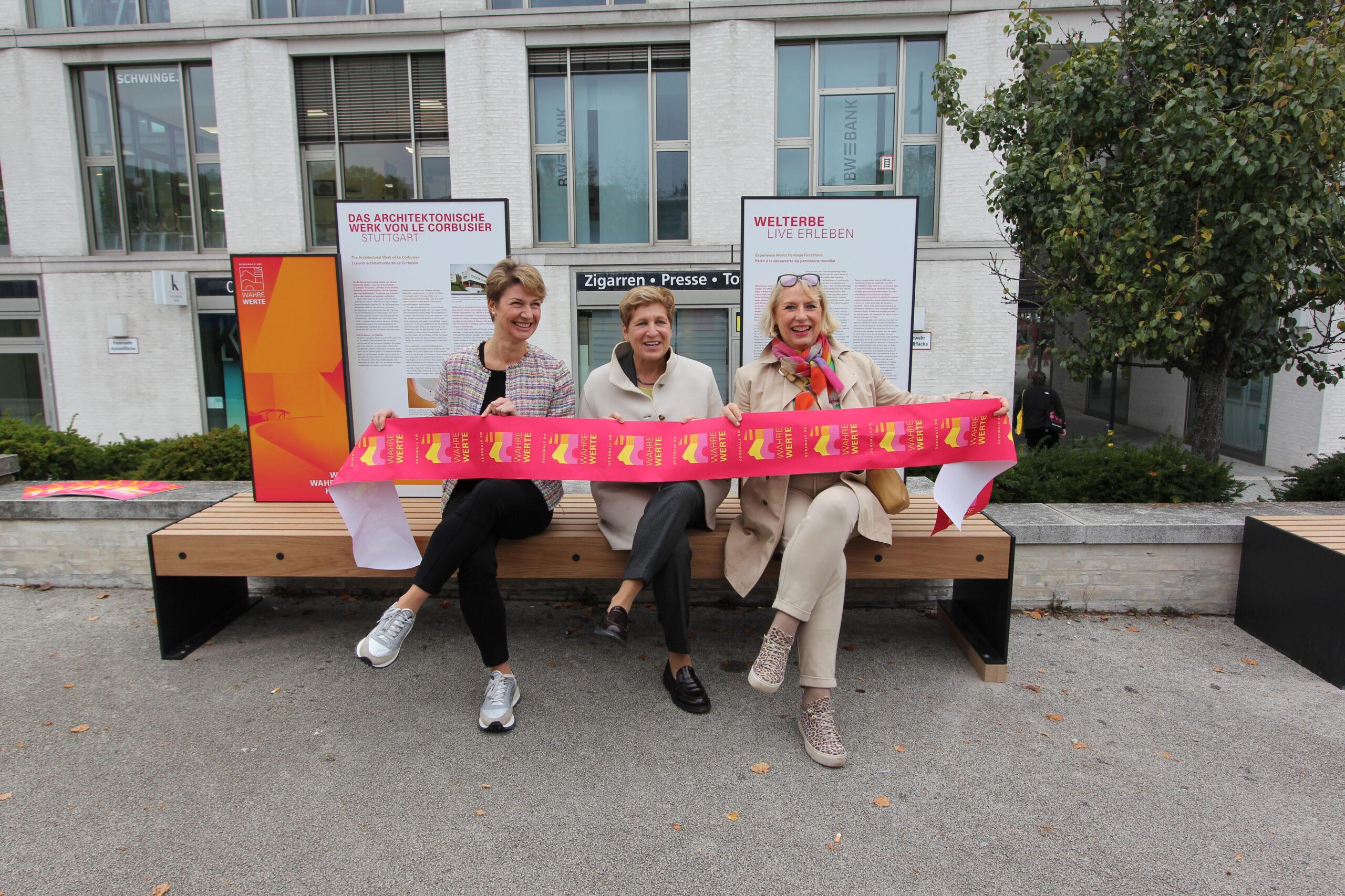 Gemeinsam mit der Landeshauptstadt Stuttgart hat die Ministerin für Landesentwicklung und Wohnen, Nicole Razavi MdL, am 10. Oktober in der Nähe der weltberühmten Häuser von Le Corbusier zwei WahreWunderBänke eingeweiht.